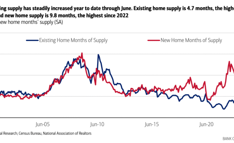 The U.S. housing market’s inventory is growing, putting pressure on prices and slowing new construction, according to fresh research from the Bank of America Institute. As of June, existing-home supply reached 4.7 months, the highest level since July 2016. New-home supply surged even further to 9.8 months—its highest point since 2022—highlighting how quickly inventory is building across the housing market.